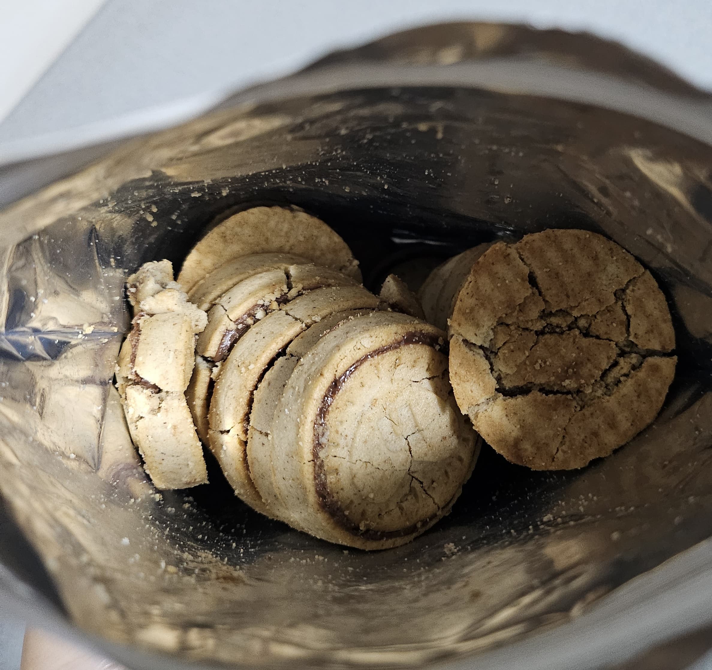 입에 넣자마자 달콤한 초콜릿 풍미가 퍼지고, 쿠키는 딱딱하지 않고 살짝 부스러지는 스타일이예요. 그래서 그런지 오픈했을때 부스러진 비스킷들이 많이 보이더라구요.
